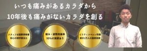 当店は、短期的な効果や一時的な効果ではなく、痛みを良くすることは前提として、その痛みがない状態が維持できて、趣味を楽しんだり日常生活を不自由なく送れる様な不調がない体を創ることを目標にしています。